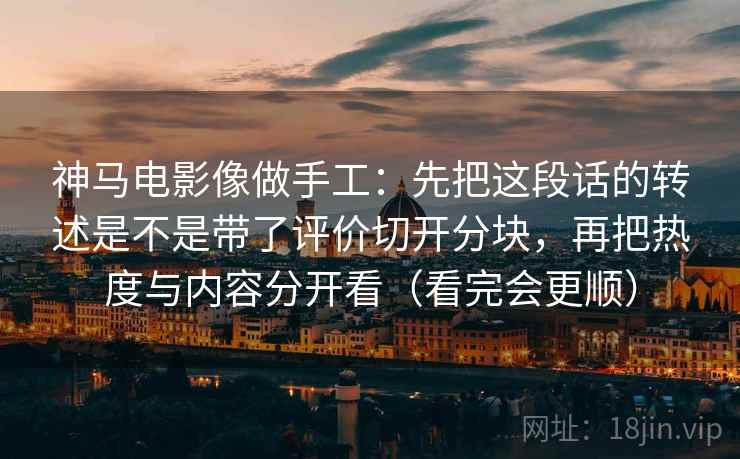 你有没有过这样的感觉:看完一部电影,脑子里不是满满的剧情,而是无数个“为什么?”“这地方怎么处理的?”“为什么它这么火?” 仿佛不是在欣赏艺术,而是在拆解一个复杂的“手工作品”。今天,我们就来聊聊这个“神马电影像做手工”的体验,试着把电影的“评价”像拆解手工一样,一段一段地剥开,再把“热度”和“内容”这两条线分开来看。这样一来,或许你会发现,看完电影后,思路会更清晰,感受也会更顺畅。