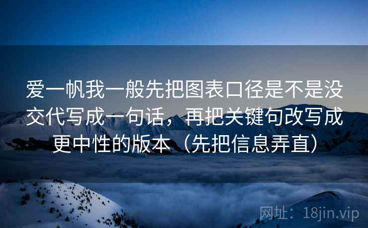标题的解读: “爱一帆我一般先把图表口径是不是没交代写成一句话,再把关键句改写成更中性的版本(先把信息弄直)” 这个标题本身很有意思。我从中提炼出核心操作: